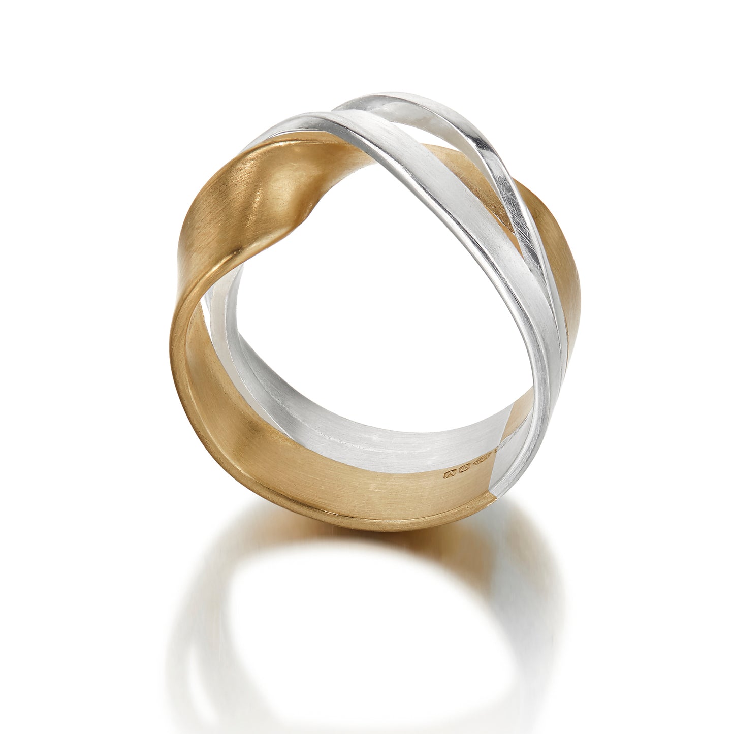 Elegant triple Möbius twist ring in silver with 18ct gold vermeil (deep layer of gilt)